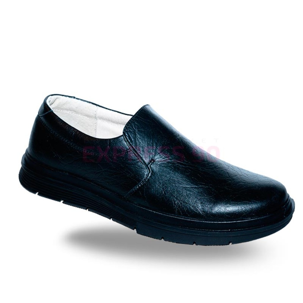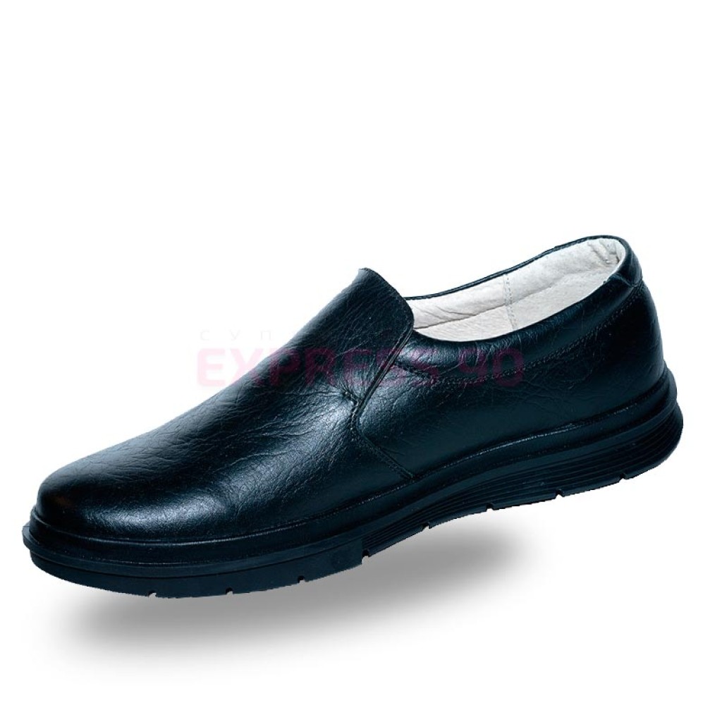 Мужские туфли из натуральной кожи, отличного качества, черного цвета, на резинке и на сплошной подошве.